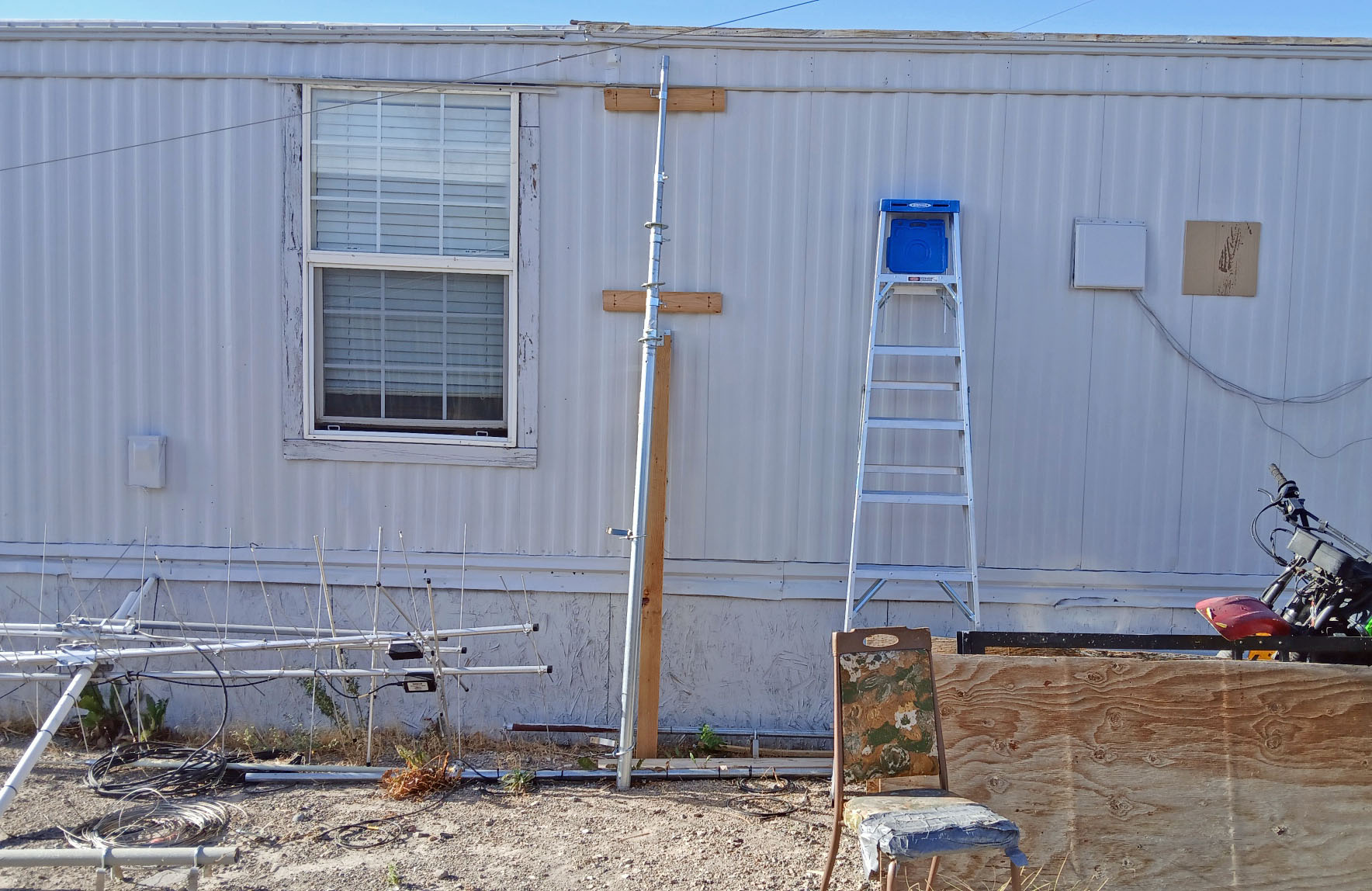 August 9th, 2025... This is the preliminary of it all. The 4x4 is 6 feet tall, which is the hold up of the weight of the entire mast. It ends up giving me an extra 6 feet higher up when its all ended up in the air!