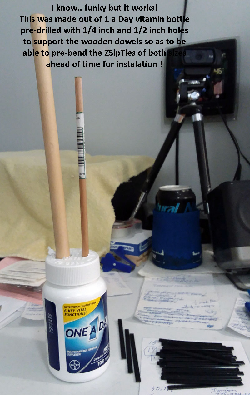 Got all of the needed zip-ties pre-bent and in a dish so I dont looz them all. Next, is to git up on the roof and do at least one of the loops!