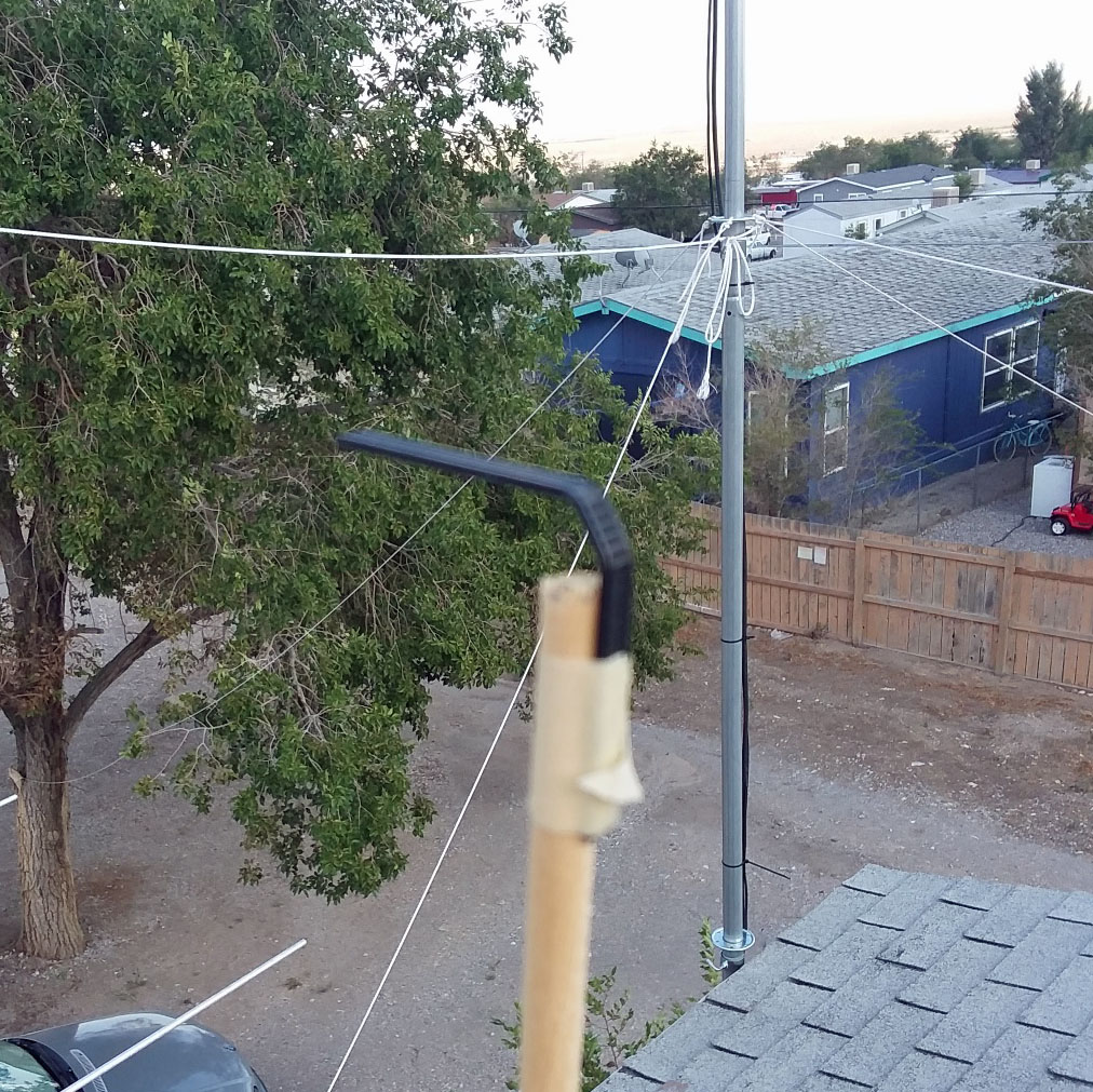 Just mounted in a temporary spot to where I can reach and work on the thing safely for now. I can pull the beam any direction I want to bring it closer to my being on the roof, and not having to think about fallin off! Its tied off for now to keep it from spinnin in the winds.