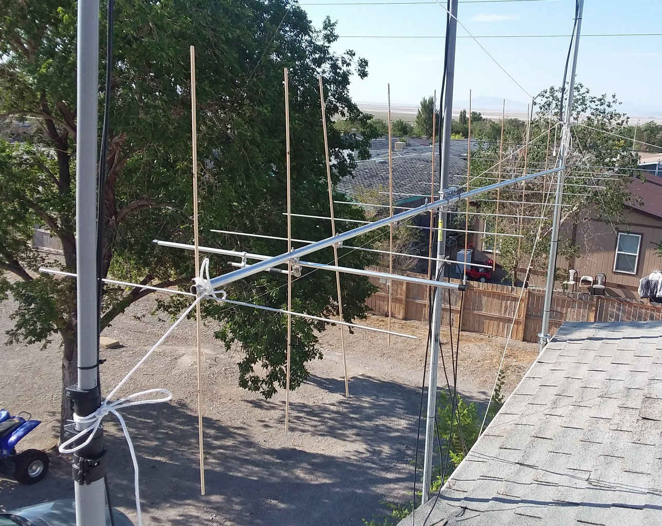Well.. got them all, except the front director element. Ran out of wire! Had 3 feet of it left off the roll of 100ft. Oh well. Git some more soon. The 14ft of the 100ft wire roll, I had used for when I made that hourglass antenna.
