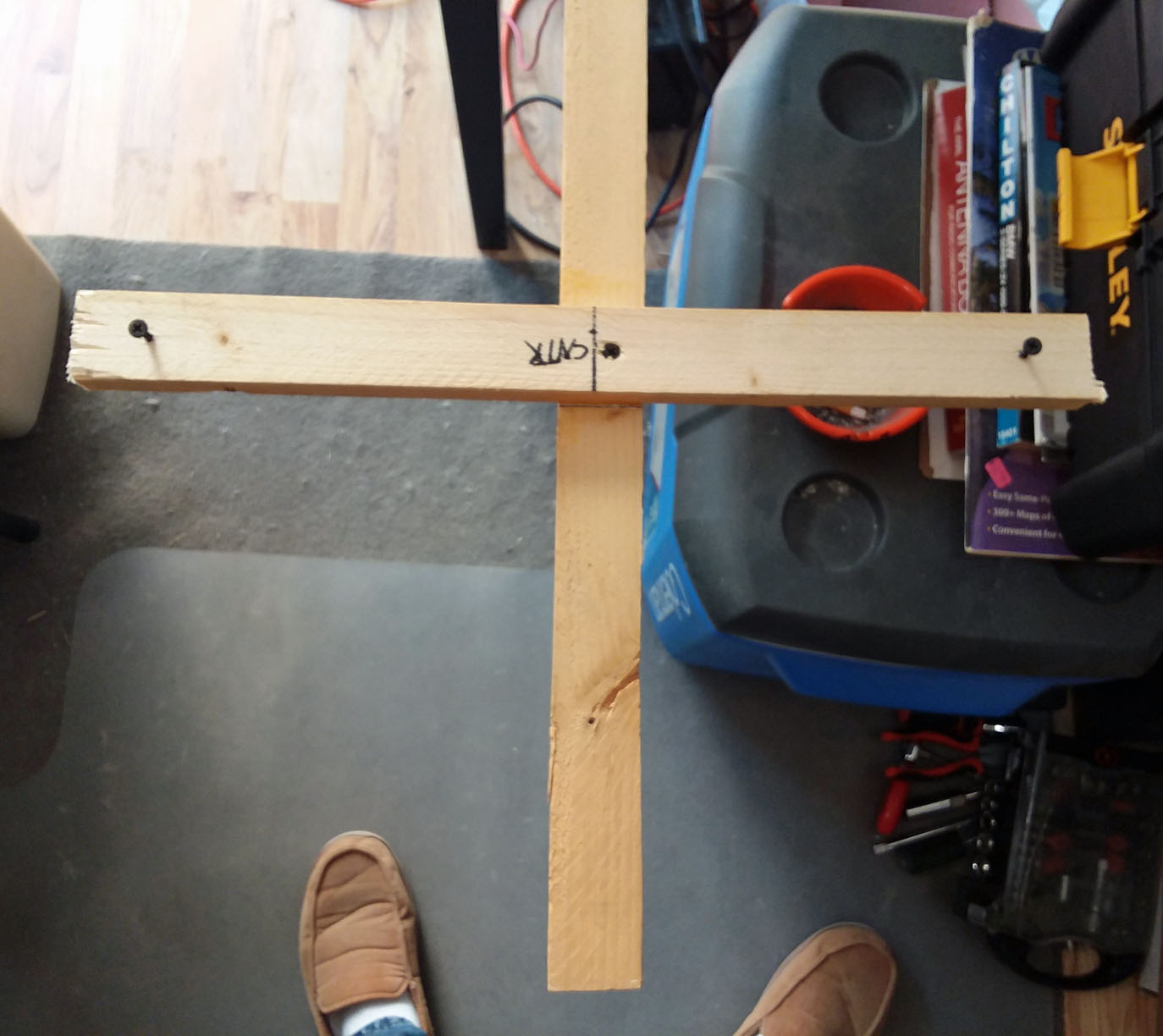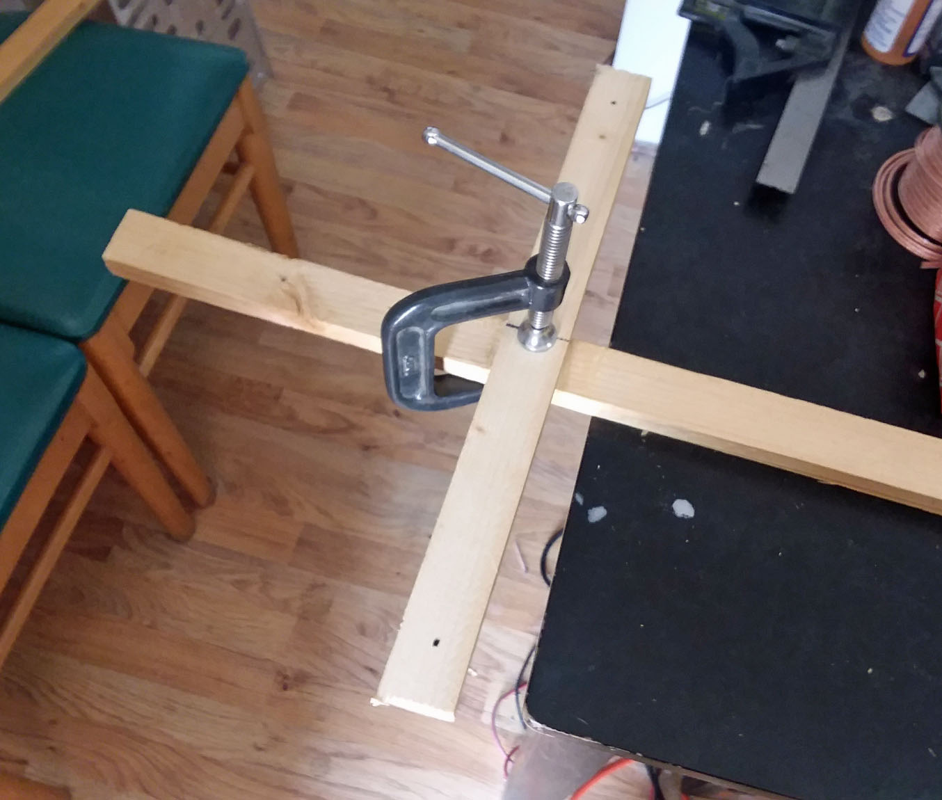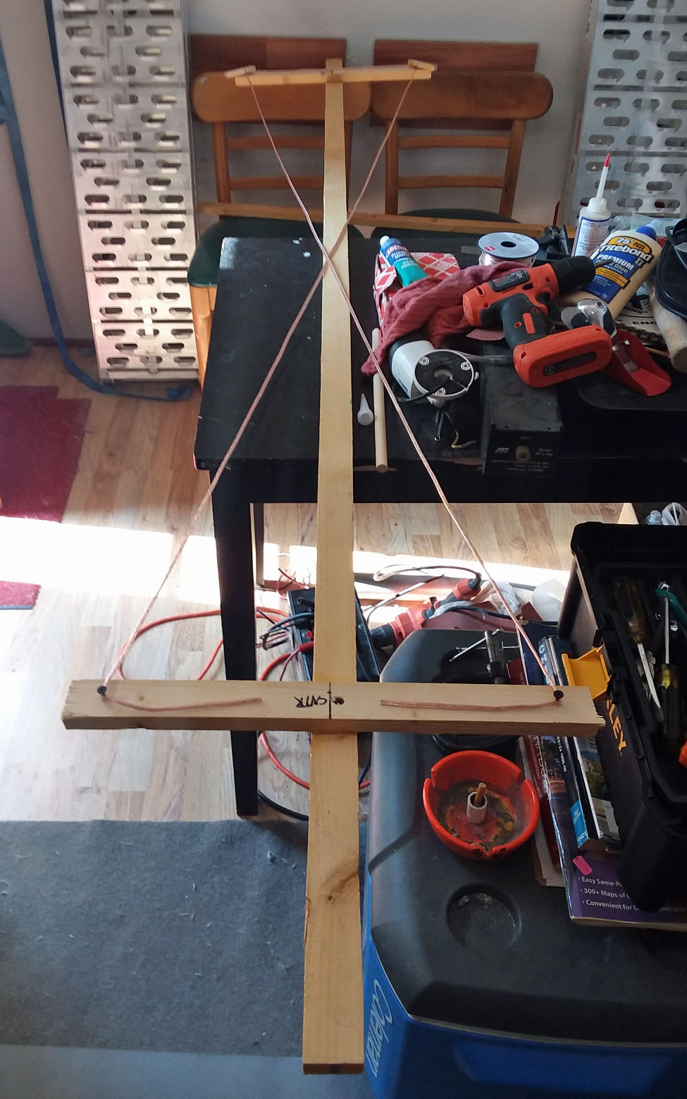 The starting of building and parts as construction started to be continued. Guess you would call this the main support mast spreader? The support frame I made out of 1 x 2 inch wood.