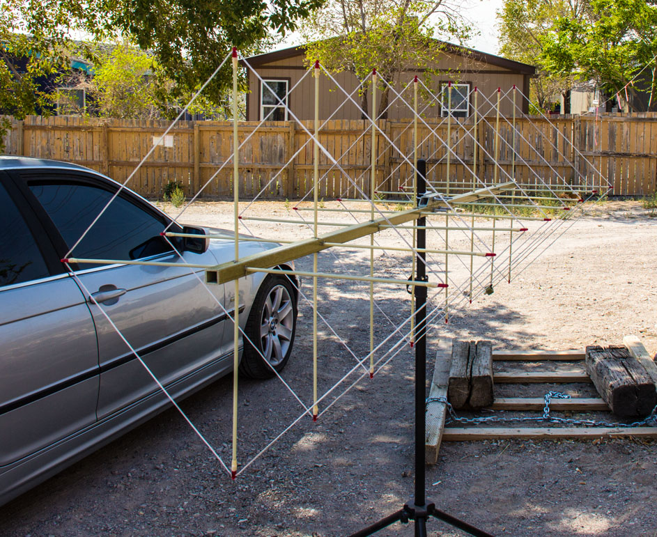 End view of reflector spreaders, tips taped on, installed and ready for wire.