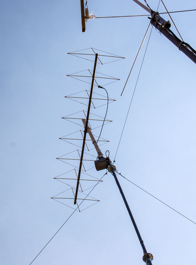 This is not all the way up in the air just yet. Lookin up from ground at antenna before I get to pushing the whole thing way up yonderz!