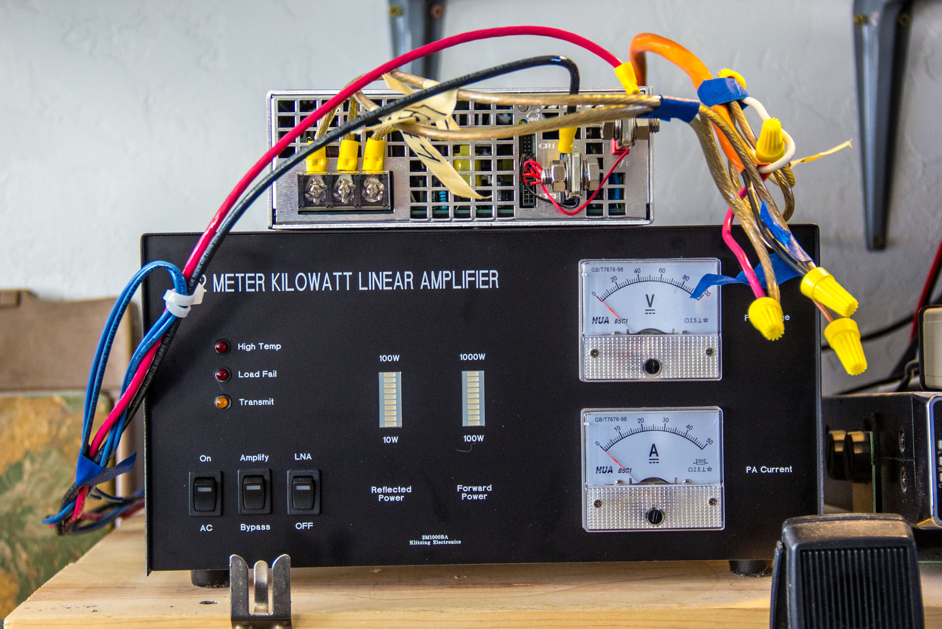 Ta - Daa! Front view of the amplifier out of the bubble wrap, and temporarly sitting on radio desk, where it will be for when the time comes when its all hooked up, etc.